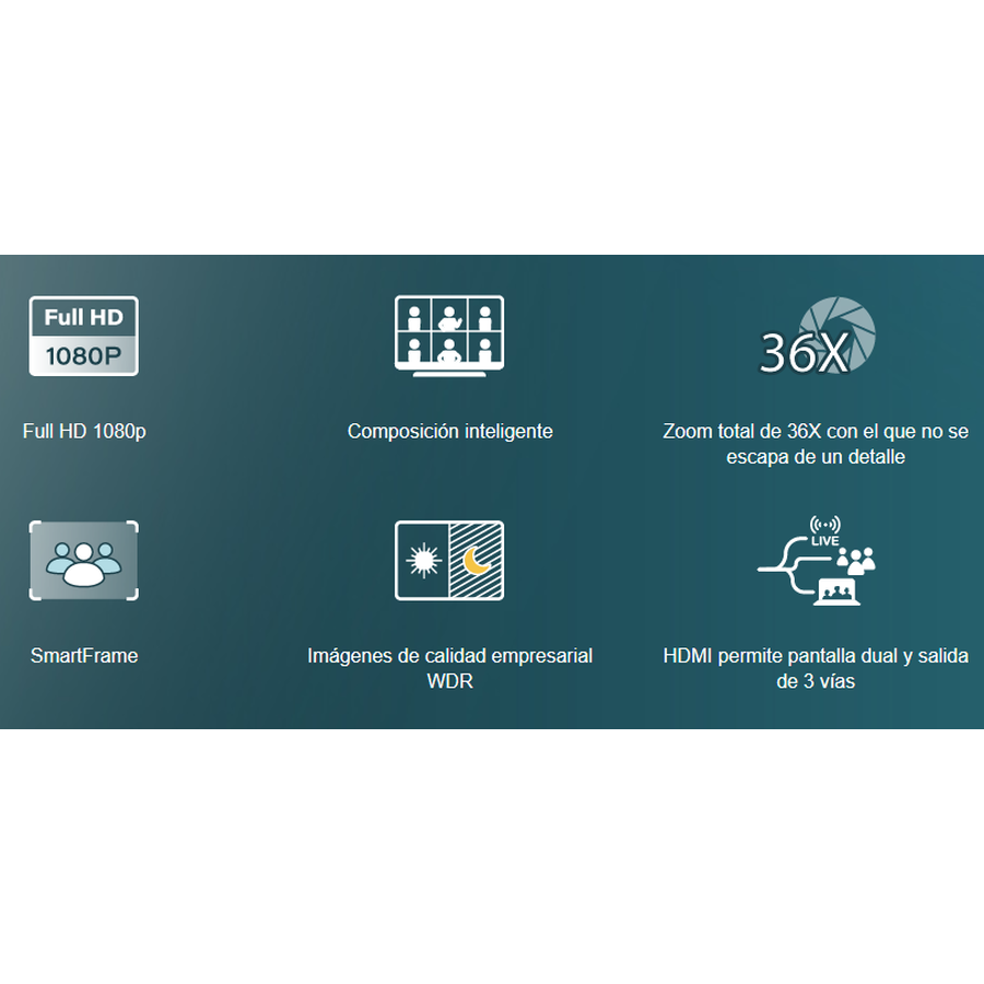 Su diseño motorizado permite paneo horizontal de ±170° y movimiento vertical de +90° a -30°, ofreciendo máxima flexibilidad durante la reunión. Gracias al software PTZApp 2 o la interfaz web integrada, el usuario puede controlar fácilmente la cámara, guardar múltiples posiciones preestablecidas y ajustar parámetros sin necesidad de equipos adicionales.